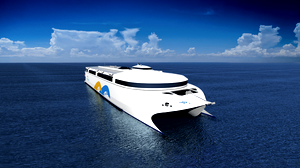 - De 130 meter lange catamaran beschikt over een krachtig waterjetvoortstuwingssysteem en een enorme batterij van 400 MWh.