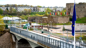 Het leven in Narva gaat gewoon door, met een stadsbeeld dat een mix laat zien van architectuur uit het Sovjettijdperk en hedendaagse Europese bedrijven. De koude wind die over de rivier de Narva waait, draagt echo’s mee van de Russische tegenhanger, Ivangorod, zichtbaar op de overkant. De brug die de twee steden verbindt, wordt momenteel gerepareerd. Overdag staat de brug open voor voetgangers, maar autoverkeer is tot het einde van het jaar beperkt. De Russische autoriteiten namen dat besluit.