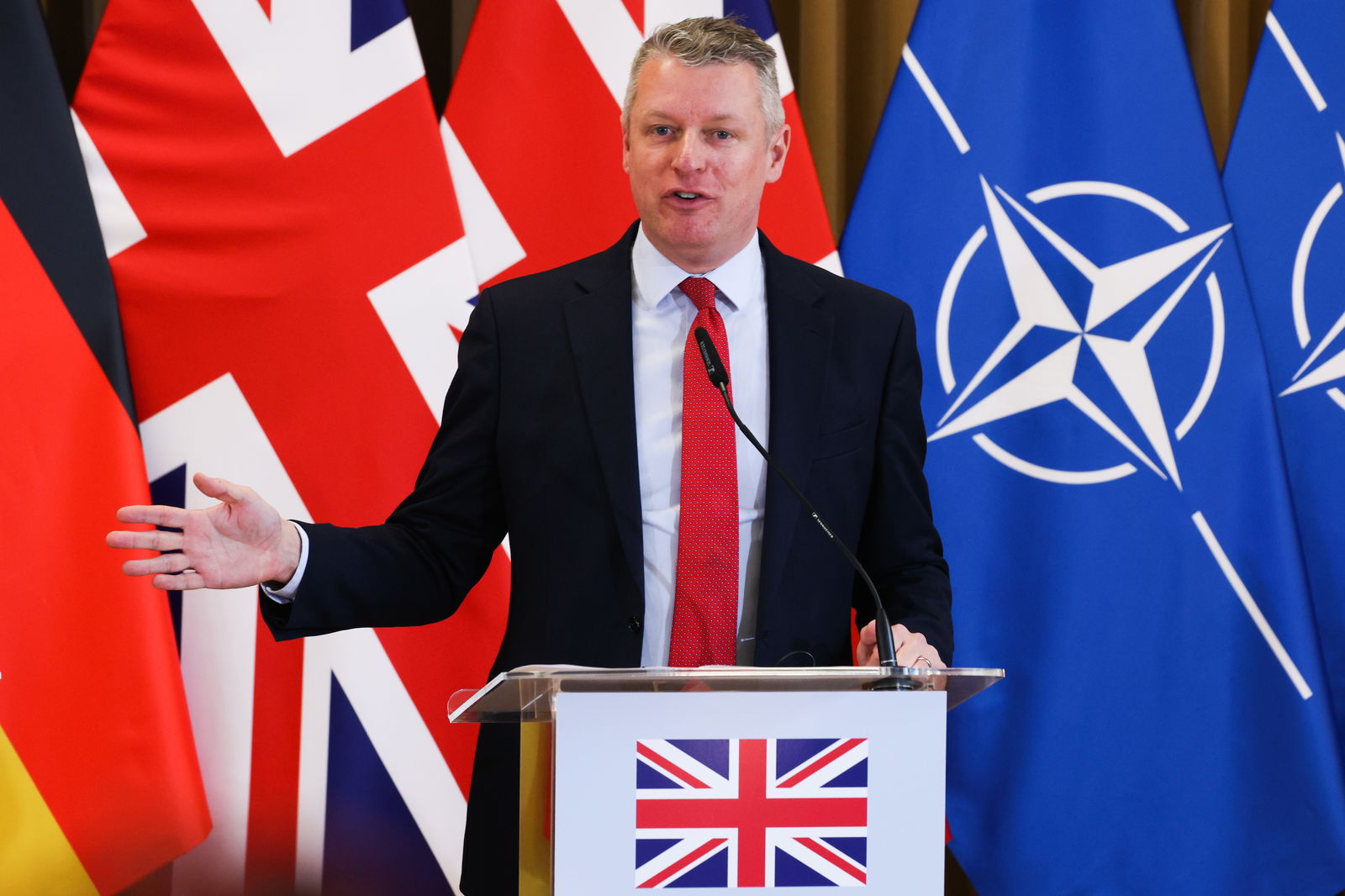 Pollard wees op een verklaring die in oktober 2025 werd afgelegd tijdens de Ukraine Defence Contact Group, waar de minister van Defensie een investering van 600 miljoen pond (687,2 miljoen euro) aankondigde om de leveringen van drones aan Oekraïne in het voorgaande jaar te versnellen. Dit resulteerde in de levering van meer dan 85.000 militaire drones tussen april en oktober 2025, waarmee de jaarlijkse doelstelling van 100.000 voor het boekjaar werd gehaald.